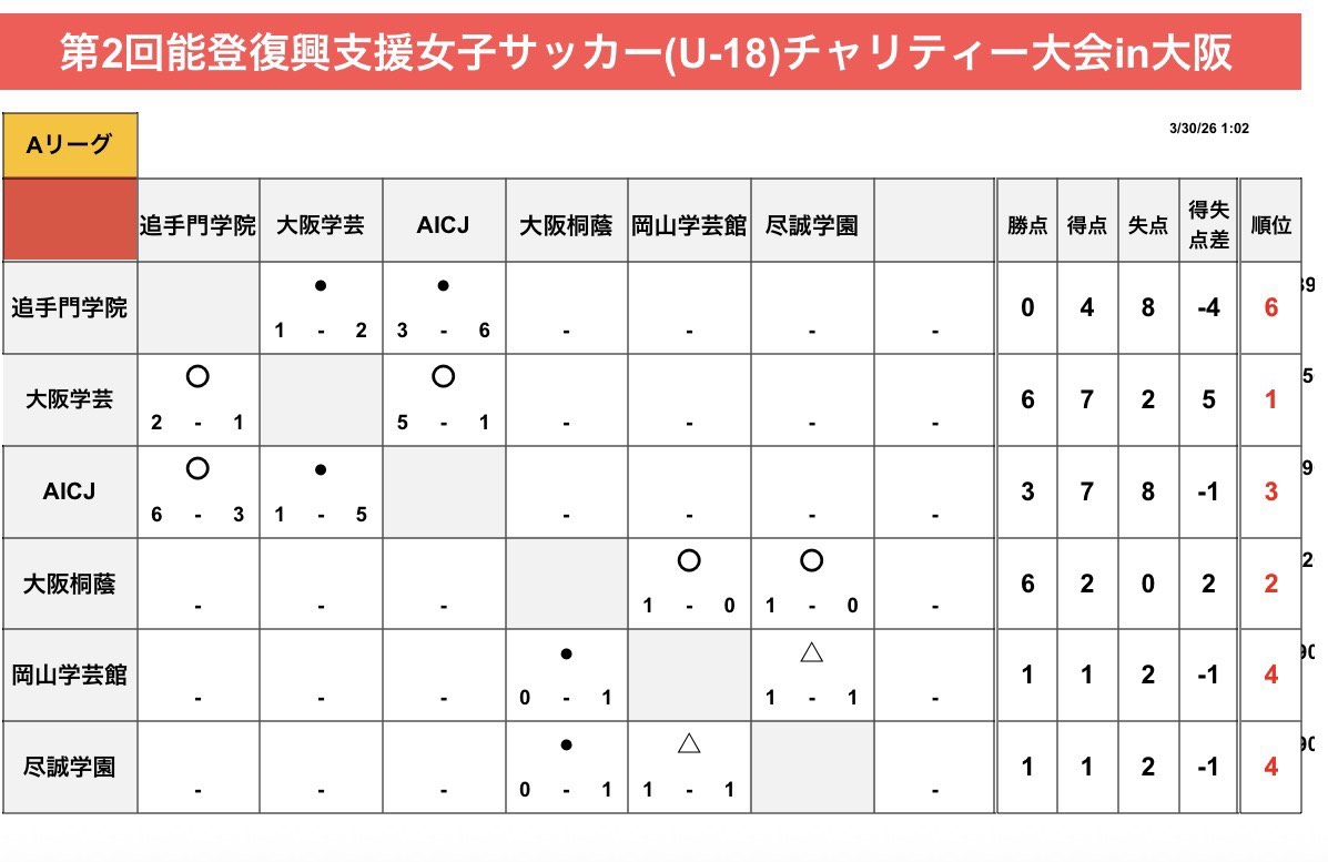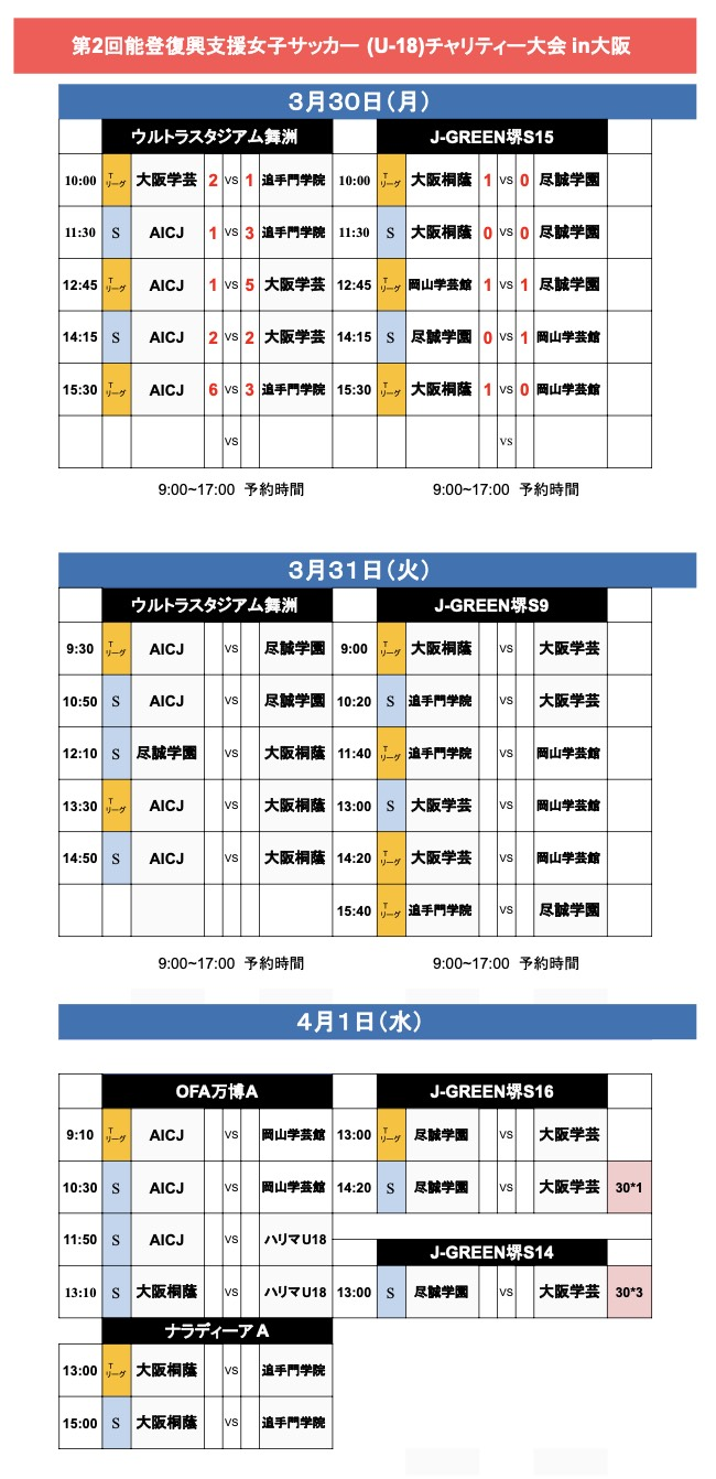 第2回能登復興支援女子サッカー(U-18)チャリティー大会 in 大阪